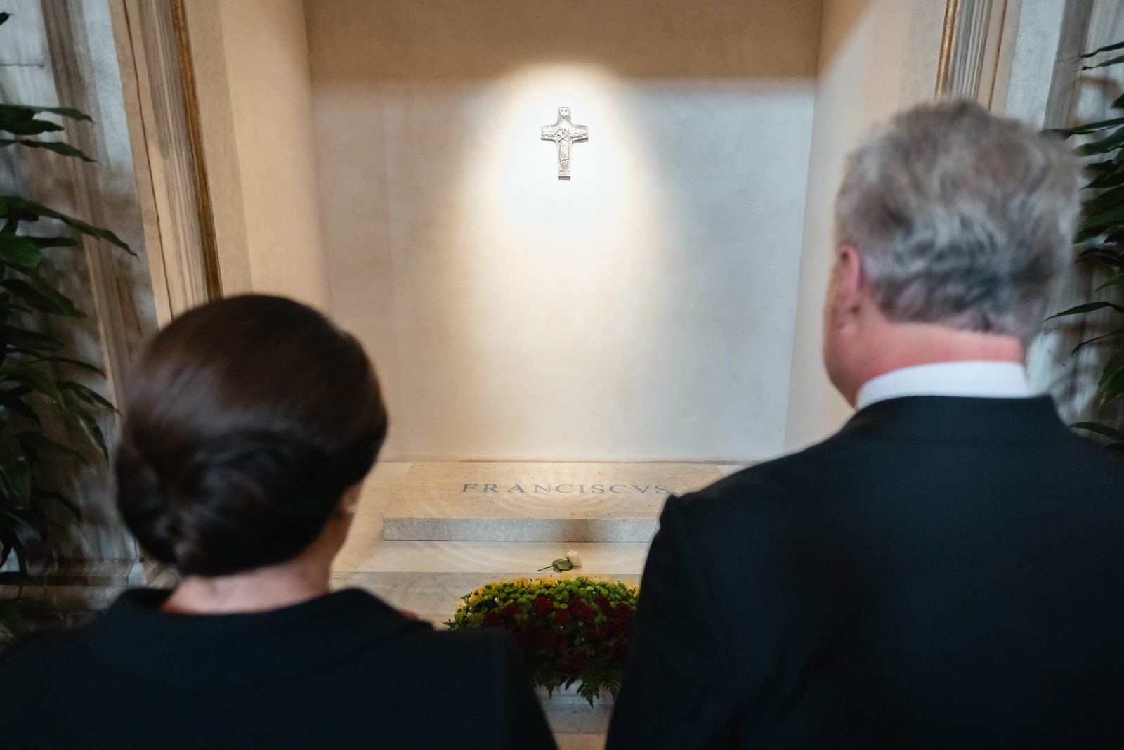 Lietuvos Respublikos prezidentas Gitanas Nausėda ir pirmoji ponia Diana Nausėdienė sekmadienį Romoje lankėsi Švenčiausiosios Mergelės Marijos Didžiojoje bazilikoje, kur atidavė pagarbą popiežiui Pranciškui jo amžinojo poilsio vietoje.