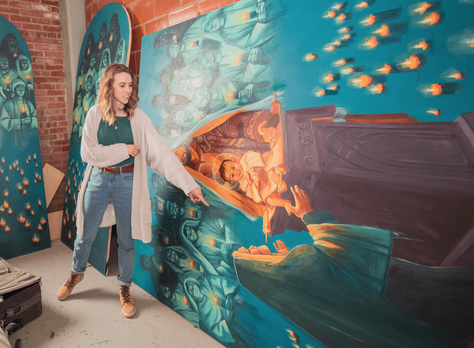 Menininkė iš Kanzaso (JAV) atgaivino savo parapiją, nutapydama daugiau nei 4 metrų aukščio triptikus, kuriuose vaizduojamas Šventosios Dvasios nužengimas ir Jėzaus pasirodymas, o jų objektai – parapijiečiai.