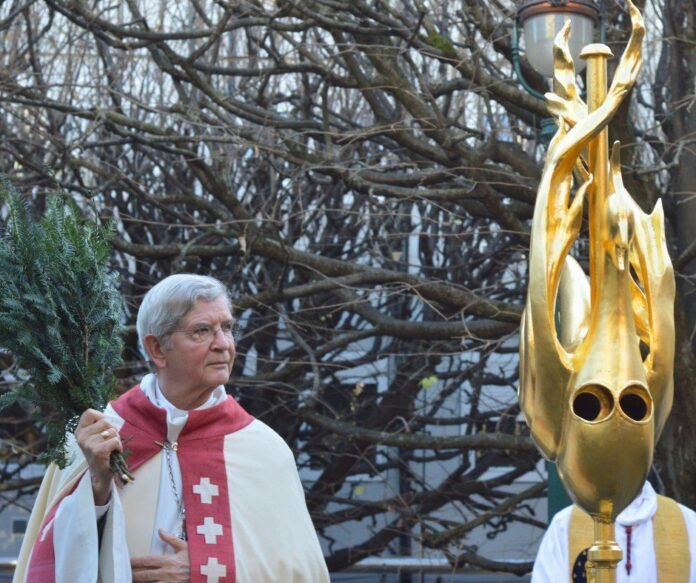 Jame taip pat buvo įdėtas indas su visų katedros atkūrimo po gaisro dalyvių sąrašu, kurių skaičius siekia beveik 2 tūkstančius. Prieš uždedant gaidį ant 96 metrų aukščio bokšto, jį pašventino Paryžiaus arkivyskupas Loranas Ulrichas.