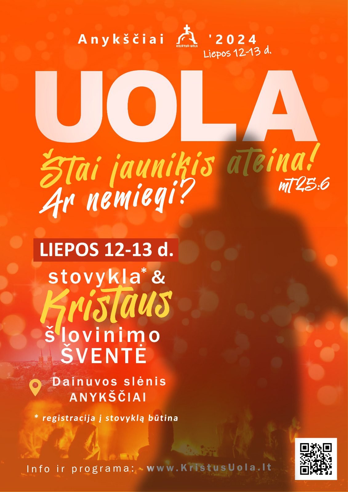 Liepos 12-13 d. Anykščiuose Dainuvos slėnis degs Kristui. Kviečiame tikinčiuosius iš visų Lietuvos pakraščių į Kristaus šlovinimo šventę „Uola”. Šventės metu bus dalijimasi Dievo Žodžiu, liudijimais, šlovins šlovintojai iš Vilniaus, Kauno, Klaipėdos ir Norvegijos. Liudijimu bei Žodžiu dalinsis Žanas Talandis, Ramūnas Bartulis, Vilma Ditkevičius.