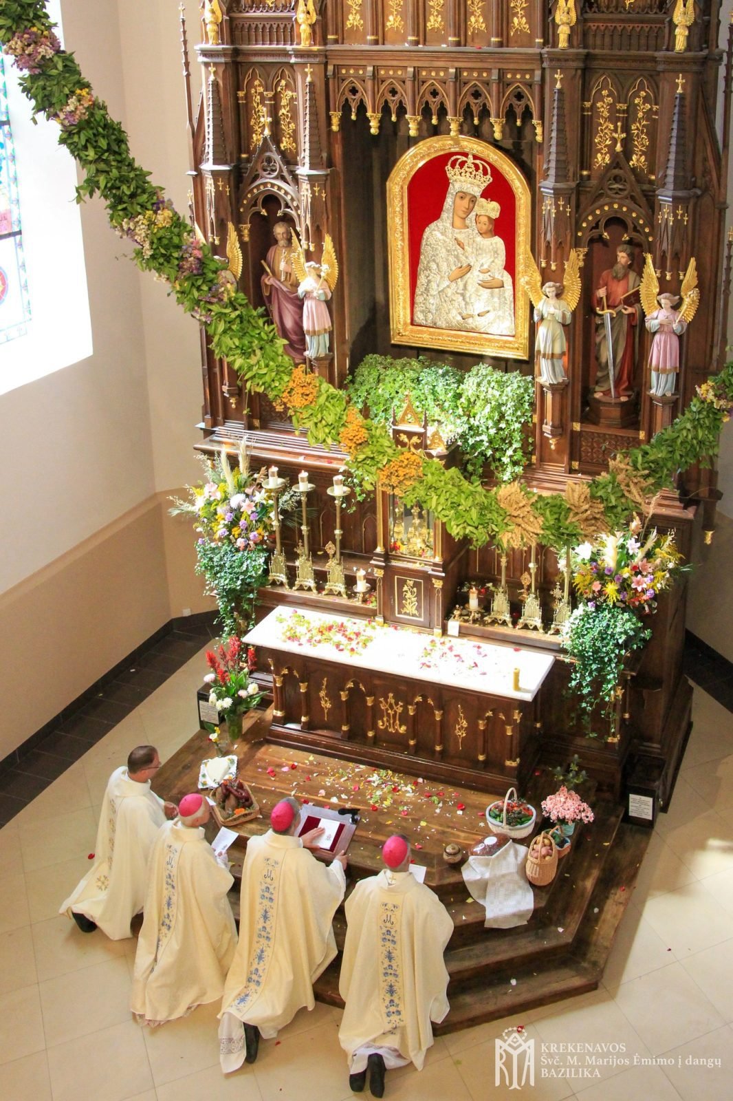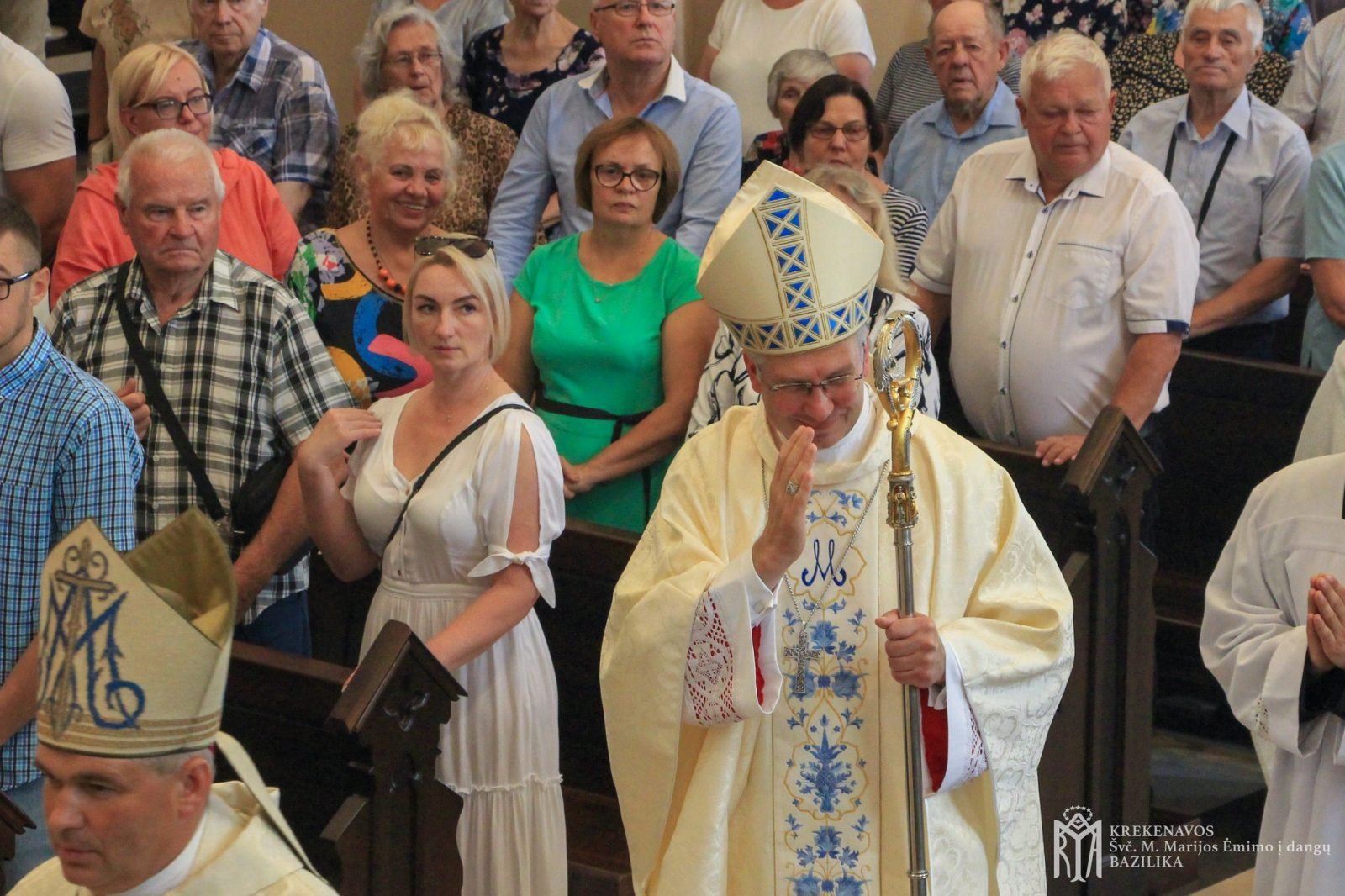 Mergelė Marija, paimta į dangų, mums liudija apie to šventojo kalno viltį – Dangaus Karalystę, kurios atšvaitus galime pajusti mūsų tarpe, kai tikėjimu žvelgiame į šią tikrovę, kai Viešpaties prašome padėti, kai atsiprašome ir pasigailime. Visa tai atlaidų malonės, dovanojamos tikinčiai širdžiai. Tebūna mums Mergelės Marijos gyvenimas, o ir šios kananietės moters tikėjimas padrąsinimas, „nes Dievui nėra negalimų dalykų“ (Lk 1, 37). Šiais Krekenavos didžiaisiais Žolinės atlaidais, pasak šiandien girdėtos psalmės: „Tebūna mums Dievas maloningas, telaimina mus ir tešviečia mums jo veidas“ (Ps 67, 2). Amen.