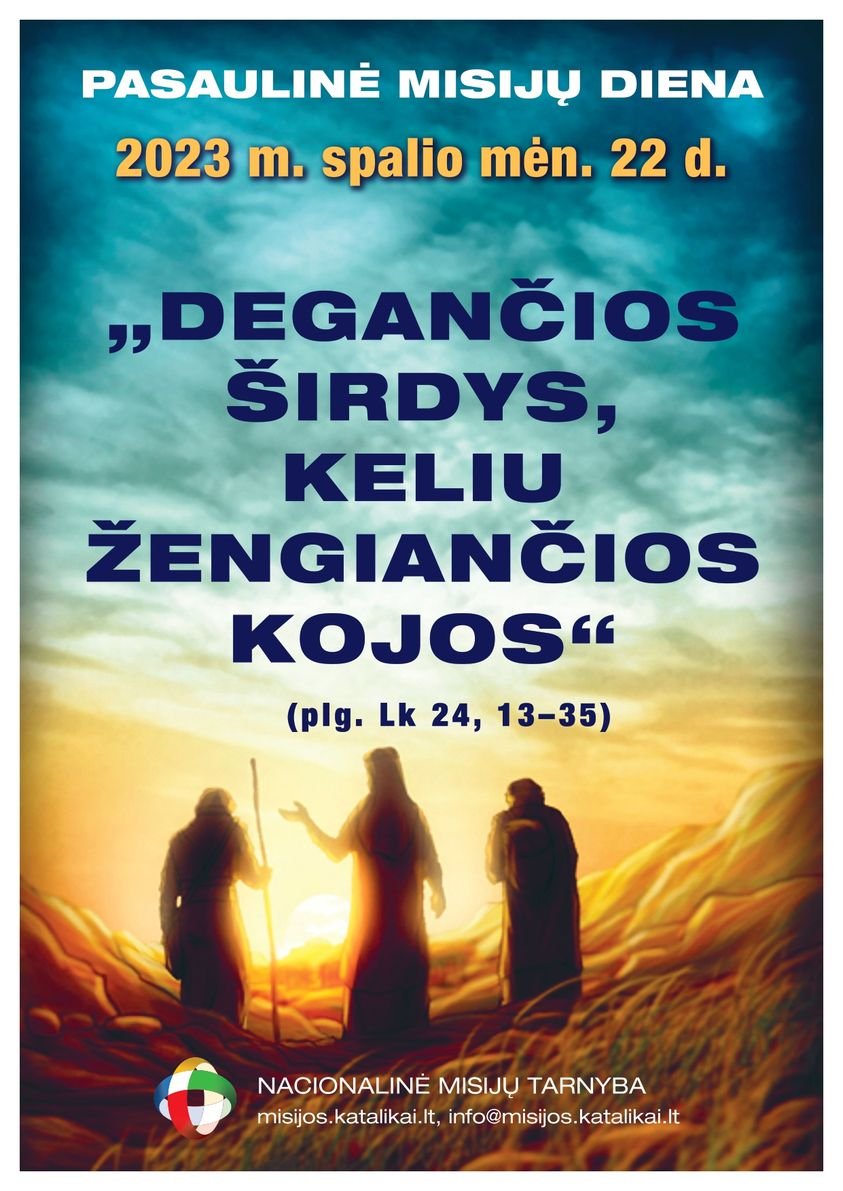 2023 m. Misijų mėnesio tema – „Degančios širdys, keliu žengiančios kojos“ (plg. Lk 24, 13–35).