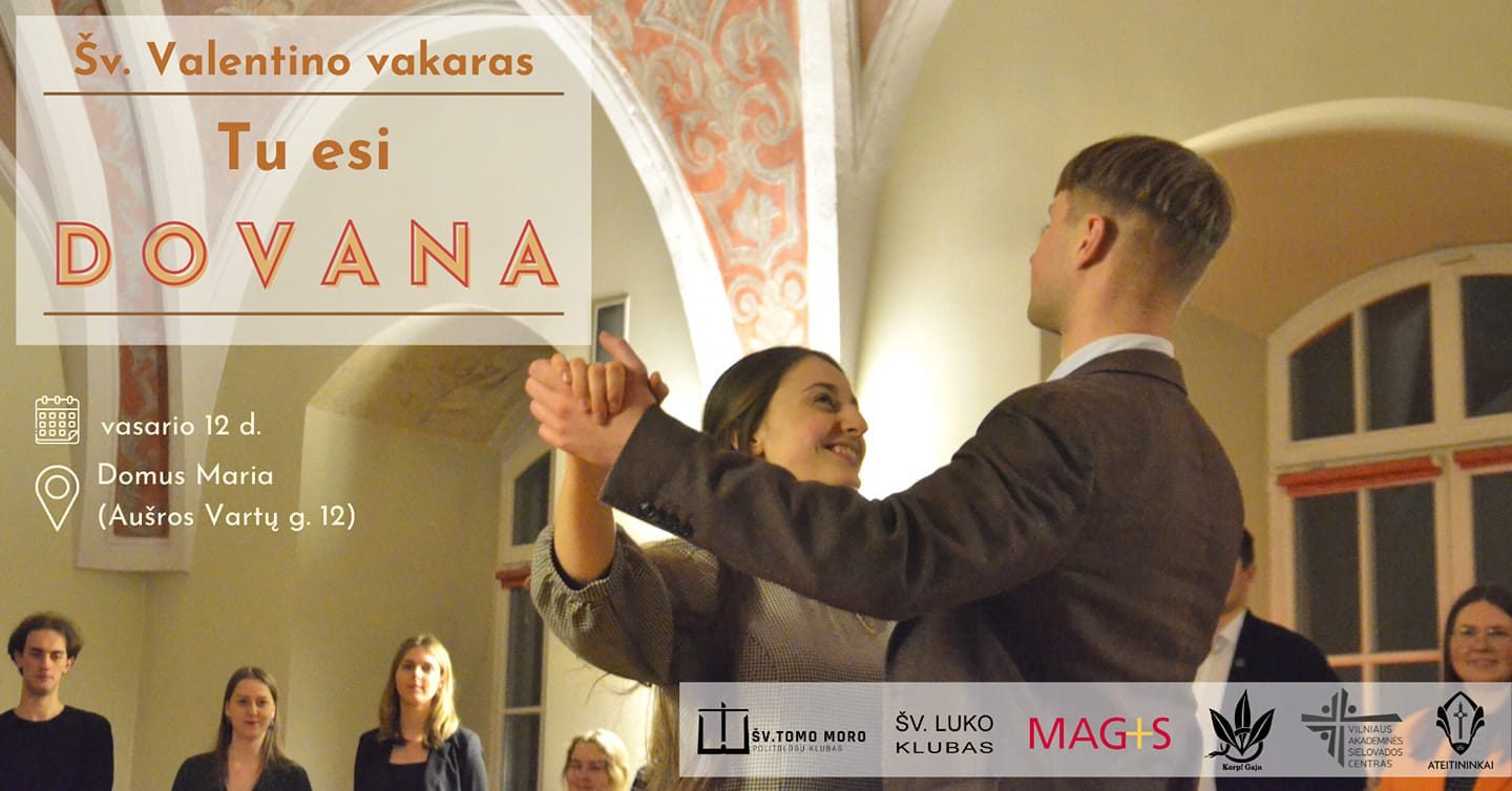Ilgiesi nuoširdžių pasikalbėjimų, ieškai, kaip prasmingai ir smagiai praleisti laiką, trokšti bendrystės bei jaukumo? O gal esi šokių mėgėjas? Jei atsakymas į bent vieną iš šių klausimų yra TAIP – širdingai kviečiame Tave ateiti vasario 12 d. į nepakartojamą nuotykį, kuriame Tavęs lauks šokiai, liudijimas, paskaita apie kūno teologiją ir, žinoma, gera proga susipažinti bei pabūti su puikiais žmonėmis.