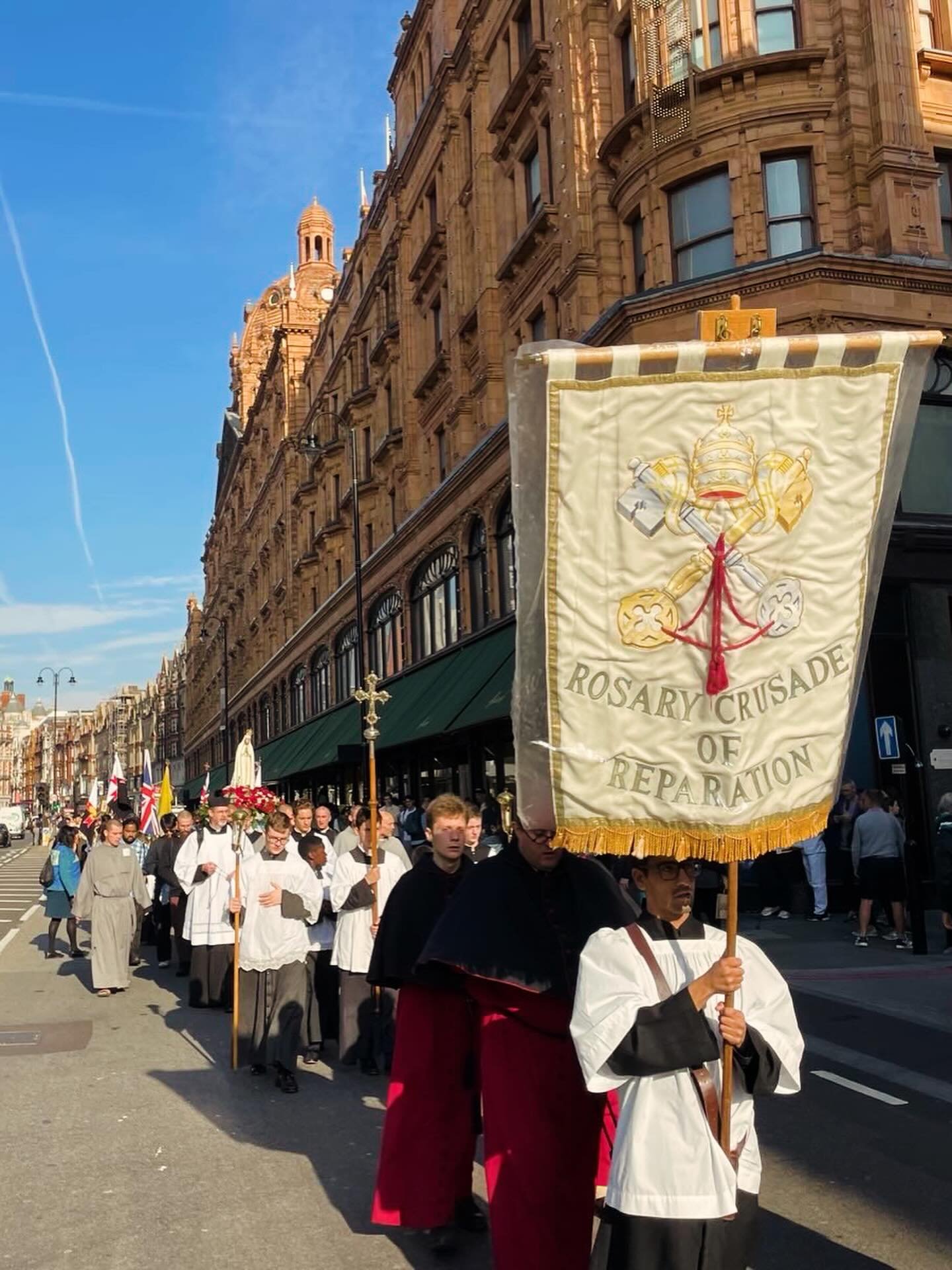 Bent 2000 tikinčiųjų šeštadienį dalyvavo tradicinėse Londono Atsiteisimo Rožinio eitynėse (Rosary Crusade of Reparation) – išskirtinai gausiame renginyje, kuris, organizatorių viltimi, liudija atgimstantį tikėjimą Anglijoje.