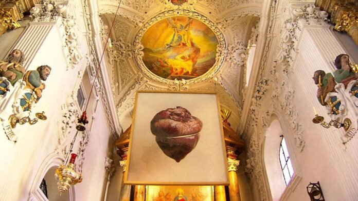 Vyskupas vienoje Insbruko bažnyčioje jis leido pakabinti didžiulį ir impozantišką, negabaritinio dydžio, gavėnios laikui skirtą altoriaus paveikslą, vaizduojantį kiaulės širdį, įspraustą į prezervatyvą.
