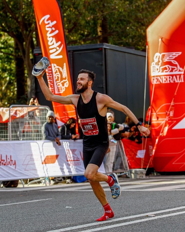 „Mano žmonai sukako 40 metų, norėjau ją pasveikinti neįprastu būdu. Jubiliejaus proga ji nusprendė nubėgti savo pirmąjį maratoną. Mūsų gyvenimas buvo kupinas iššūkių, kuriuos įveikėme kartu. Todėl pasirinkau tokį simbolinį gestą – bėgti kartu su ja, bet su kroksais. Man pavyko pasiekti naują pasaulio rekordą“, – sako jis.