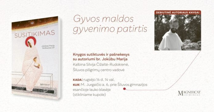 Kviečiame į knygos sutiktuves! Pirmasis knygos pristatymas – pašnekesys su knygos autoriumi br. Jokūbu Marija Goštautu OP – numatytas Šiluvoje, atlaidų metu, rugsėjo 14 d. 14 val. M. Jurgaičio a. 6, prie Šiluvos gimnazijos esančioje lauko klasėje (stikliniame kupole).