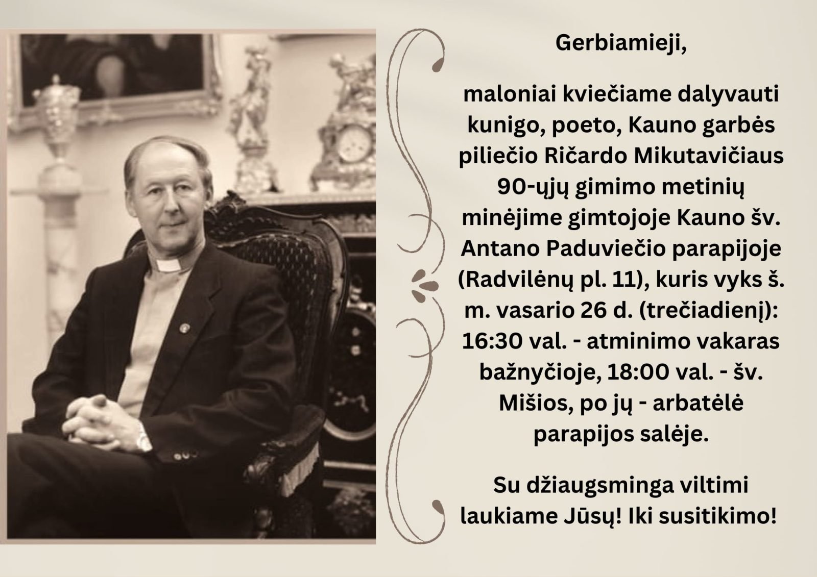 REIKALINGA JŪSŲ PARAMA RENGINIŲ ANONSAI Bus pagerbtas kunigo Ričardo Mikutavičiaus atminimas 2025 02 20 14:31 43 FacebookLinkedinTelegramViberWhatsAppTwitterEmailSpausdinti: Dalintis FacebookLinkedinTelegramViberWhatsAppTwitterEmailSpausdinti: Ankstesnis straipsnis„Pro Patria“ kviečia Vasario 16-ąją švęsti kartuKitas straipsnisVilniaus knygų mugėje – fondo „Donum“ stendas skirtas disidentų veiklai SUSIJĘ STRAIPSNIAI Advento piligrimystė į Šiluvą Lietuvoje lankysis vokiečių filosofas, katalikų teologas ir rašytojas dr. Johannesas Hartlis Mažosios Lietuvos gyventojų genocido diena REKOMENDUOJAME Seimas priėmė nepalankų sprendimą Jehovos liudytojų bendruomenei PARAMA NAUJAUSI Marius Parčiauskas. Smurtas prieš vaikus? Skaitytojų paštas. Paberžės bažnyčia tampa kultūros namais? Dr. Johannesas Hartlas. Geroji Naujiena vs. Bloga komunikacija Vilkaviškio katedroje paminėta Negimusio kūdikio diena Krikščioniškojo roko grupė „Gyvasis vynmedis“ laužo stereotipus Advento piligrimystė į Šiluvą Popiežius Leonas XIV paskelbė apaštališkąjį laišką skirtą Nikėjos susirinkimui Būtume dėkingi, jei mus paremtumėte PARAMA