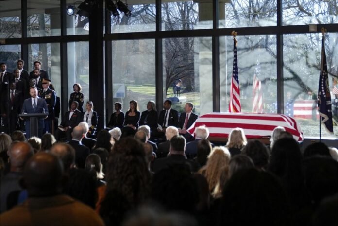 Iš ten jo karstas buvo nugabentas į prezidento J. Carterio centrą, kur nuo šeštadienio iki antradienio žmonės galės atsisveikinti su buvusiu prezidentu.