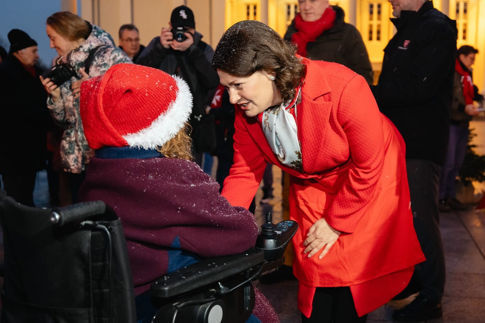 Pirmoji ponia pabrėžė, jog artėjančios šv. Kalėdos simbolizuoja meilę, viltį, pasiaukojimą, širdžių šilumą bei jautrumą. „Labai gražu, kuomet ši gyvybinga banga plinta po visą Lietuvą, kad ja užsikrečia vis daugiau žmonių, ypač jaunimo, suvokiančio savanorystės ir pagalbos kitam prasmę, pasižyminčio nuoširdžia atida šalia esančiam“, – kalbėjo D. Nausėdienė.