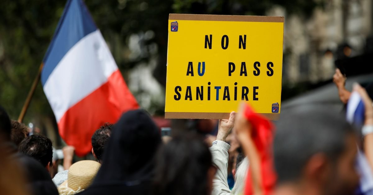 Tarp tų, kurie šią savaitę nedalyvavo protestuose, buvo Francois Asselineau (Fransua Aselino), kitos antieuropietiškos partijos – Liaudies respublikonų sąjungos – lyderis ir aršus kovotojas prieš sveikatos leidimą, kuris pats susirgo COVID-19.