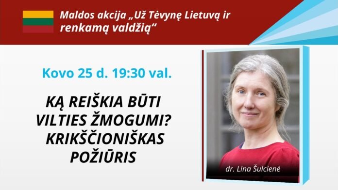 Nuo vasario 14 d. vyko maldos akcija „Už Tėvynę Lietuvą ir renkamą valdžią“. Kovo 25 d. įvyko šeštasis šios maldos akcijos nuotolinis susitikimas, kurio metu savo mintimis „Ką reiškia būti vilties žmogumi? Krikščioniškas požiūris” dalinosi dr. Lina Šulcienė.