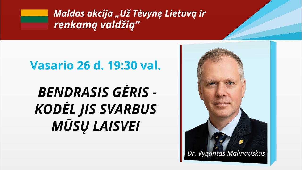 Vasario 26 d. vyko antrasis šios maldos akcijos nuotolinis susitikimas, kurio metu savo mintimis „Bendrasis gėris – kodėl jis svarbus mūsų laisvei” dalinosi dr. Vygantas Malinauskas.