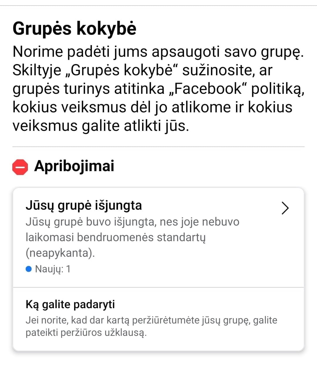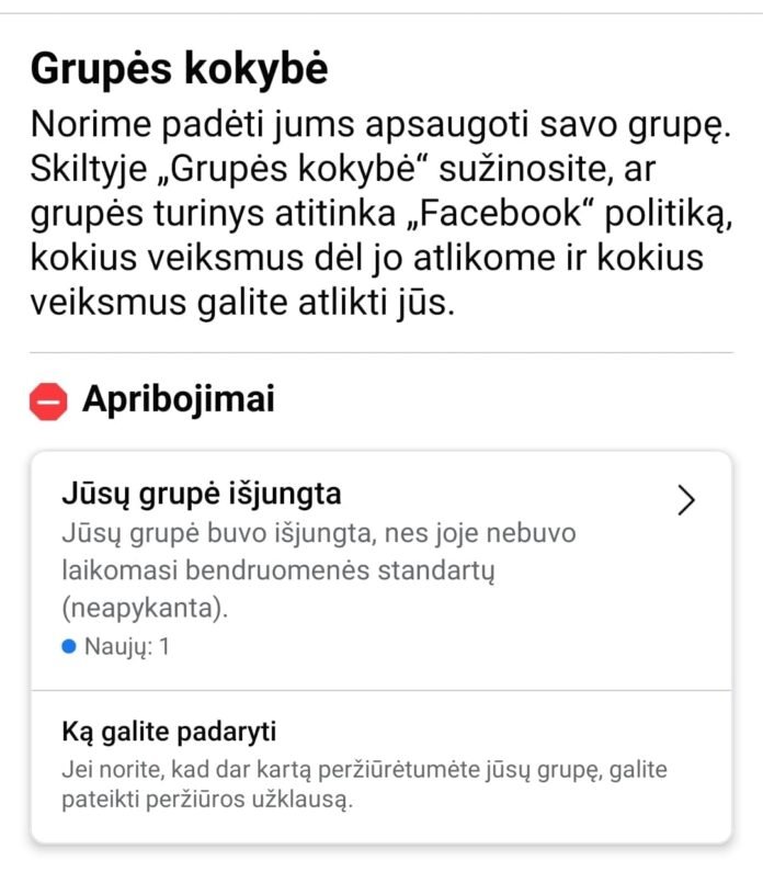 Vasario 22 d. „Facebook“ išjungė Lietuvos tėvus vienijančią grupę „Vieningi tėvai už stiprią ir saugią šeimą Lietuvoje”. Kaip teigė grupės aprašymas, grupė pasisakė už tradicines vertybes, laisvą nuomonę ir žodį, tradicinę šeimą – kaip valstybės pamatą, gyvybę – nuo pat pradėjimo iki paskutinio iškvėpimo, saugią vaikų ateitį, valstybės pagalbą šeimoms, o ne perteklines priemones, kurios pažeidžia šeimos privatumą. Taip pat grupės narius vienija patriotiškumas, tautiškumas ir meilės Tėvynei puoselėjimas. Grupė vienijo 57000 Lietuvos tėvų. Sukurta nauja grupė.