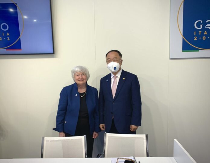„Šiandien kiekvienas G-20 valstybės vadovas pritarė istoriniam susitarimui dėl naujų tarptautinių apmokestinimo taisyklių, įskaitant visuotinį minimalų mokestį, kuris padarys galą žalingoms lenktynėms, kas nustatys mažesnį pelno mokestį“, – pareiškė ji.