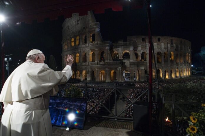 Penktadienio vakaro pamaldas prie Koliziejaus užbaigė Šventojo Tėvo malda: