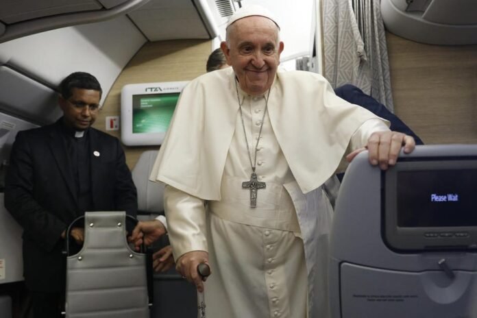 Pakeliui atgal į Romą popiežius lėktuve susitiko su jį lydinčiais spaudos darbuotojais, atsakė į jų klausimus apie šią ir kitas planuojamas keliones, apie jo sveikatą ir ar ketina trauktis iš popiežiškosios tarnystės, apie Sinodinį kelią Vokietijoje ir moters svarbą tikėjimo perdavimui.