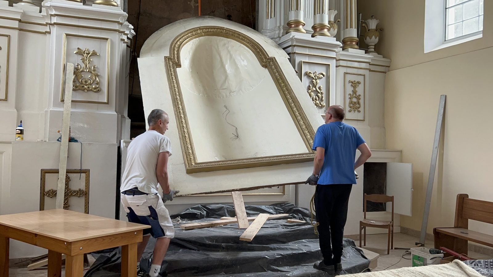Garliavos Švč. Trejybės parapija praneša, kad šiuo metu vyksta intensyvūs bažnyčios altoriaus restauravimo darbai.