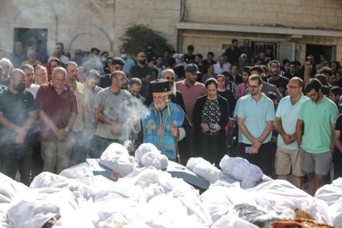 Spalio 20 d. Gazos Ruožo Šv. Porfirijaus bažnyčios kieme vyko krikščionių, žuvusių per Izraelio oro smūgį, laidotuvės, praneša orthodoxianewsagency.gr.