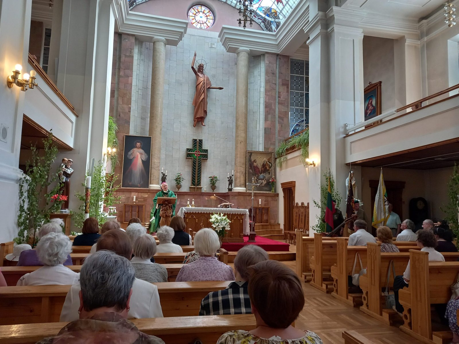 Minėjimo renginys Švč. Trejybės bažnyčioje prasidėjo iškilminga visuomeninių organizacijų vėliavų įnešimo ceremonija ir šv. Mišiomis už politinius kalinius bei tremtinius.