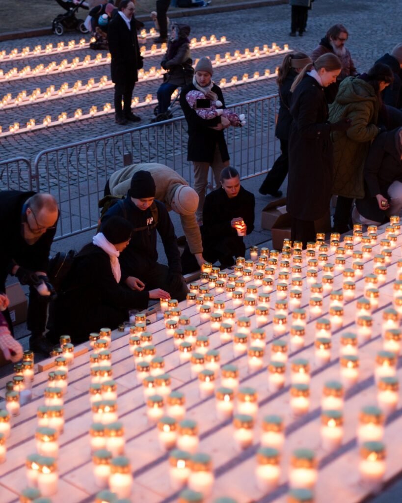 Uždegus žvakes, dalyviai tylos minute pagerbė mirusiuosius, o savanoriai liko budėti visą naktį, kol žvakės toliau degė Helsinkio centre.