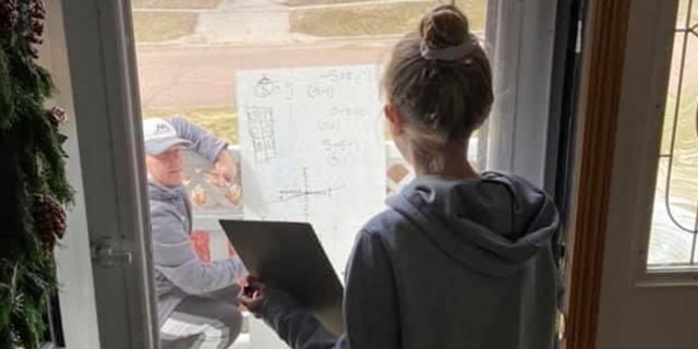 Na, greičiau kelis šimtus metrų, bet šis mokytojas nusprendė laisvalaikiu nueiti pas savo mokinę į namus, ir suteikti jai papildomos pagalbos, kai jai sunkiai sekėsi matematika. Jis sėdėjo lauke, kad būtų saugus COVID-19 atstumas, ir atsinešė reikiamos medžiagos, kad padėtų jai suprasti matematiką.