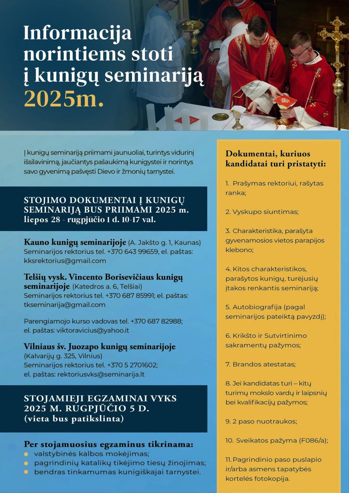 Lietuvoje veikiančios kunigų seminarijos skelbia informaciją apie priėmimą ir kviečia kandidatus teikti dokumentus.