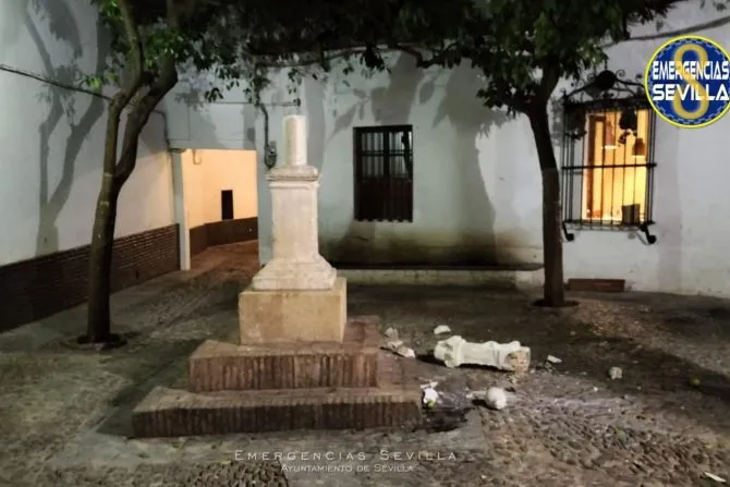 Praėjusį savaitgalį Sevilijos viešojoje aikštėje prie katedros buvo vandalų nuniokotas XVI a. iškaltas akmeninis kryžius, pastatytas ant atramos.