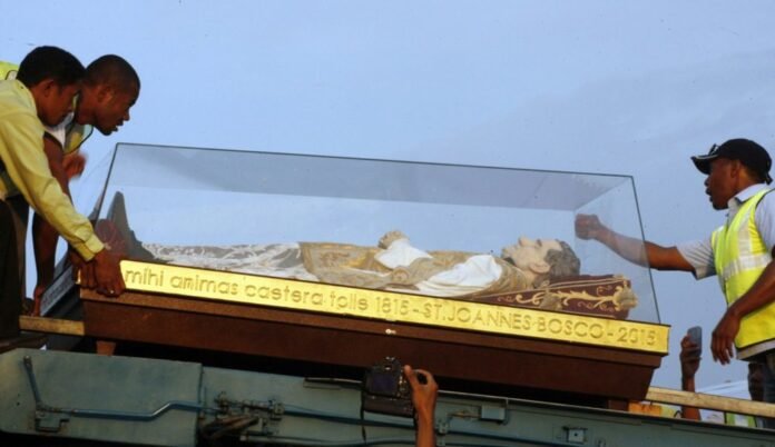Šimtai Rytų Timoro katalikų maldininkų susirinko į Dilį (Rytų Timoras), kai buvo atgabentas šventojo Dono Bosko karstas su relikvijomis.