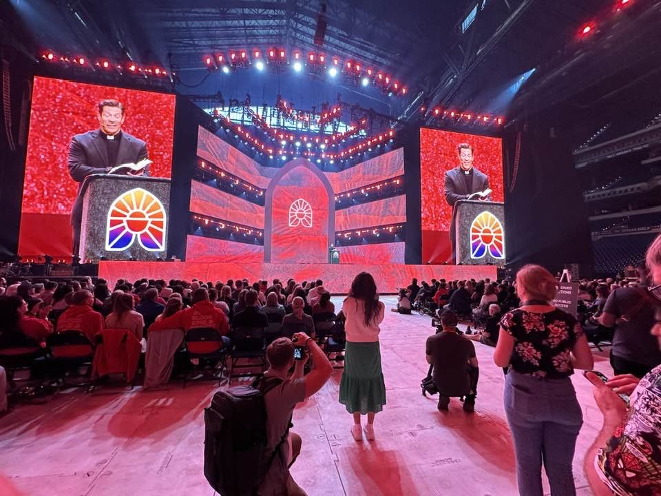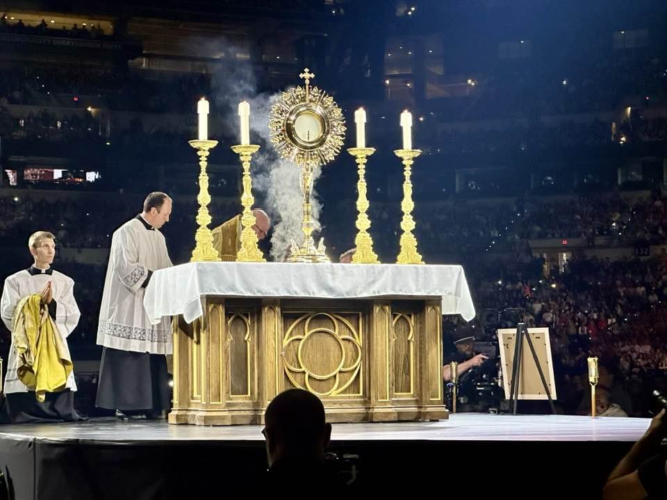 Po ilgų planavimo ir laukimo metų JAV Nacionalinis eucharistinis kongresas oficialiai prasidėjo trečiadienio vakarą triumfuojančia nacionalinių eucharistinių piligrimysčių kulminacija, iškilmingu Eucharistinio Jėzaus įvedimu popiežiaus palaimintoje auksinėje monstrancijoje ir katalikų šviesuolių kalbomis, kurios davė toną istoriniam penkių dienų renginiui.
