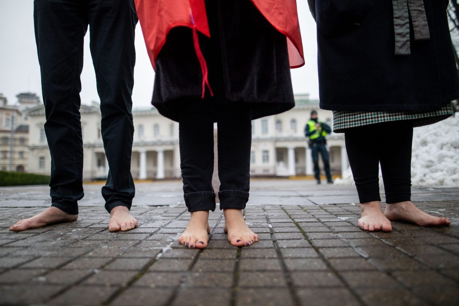 Basomis kojomis priešais prezidentūrą protestavusi Vitalija teigė, kad neretai Lietuvoje svarbios ne pačios protesto temos, bet ir protestuojančių įvaizdis.