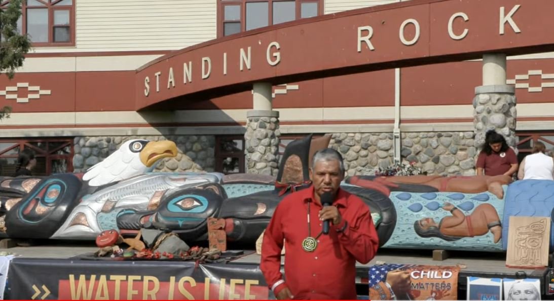 Paminklinį toteminį stulpą, pririštą prie vilkiko galo, lydi indėnų aktyvistų grupė. Demonstracija buvo skirta spausti JAV vyriausybę, vadovaujamą prezidento Joe Bideno, imtis skubių veiksmų siekiant apsaugoti indėnų apgyvendintas teritorijas, kurioms, aktyvistų manymų, kilo didelė grėsmė.
