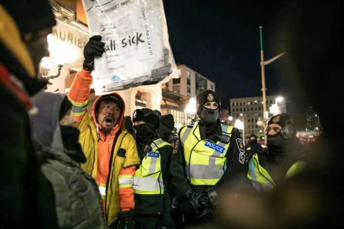 Penktadienį policija suėmė dešimtis Kanados „Laisvės konvojaus” protestuotojų šalies sostinėje Otavoje ir atitraukė transporto priemones. Sunkvežimių srautas ėmė skirtytis, spaudžiamas valdžios institucijų. Šios jau tris savaites siekia, kad pagaliau baigtųsi protestas prieš šalyje taikomus COVID-19 apribojimus.