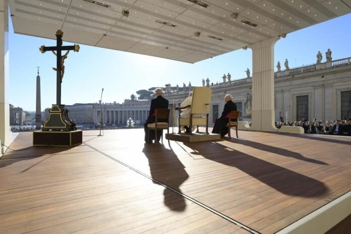 Malda ir savęs pažinimas padeda augti laisvėje. Tai yra pagrindiniai krikščioniškos egzistencijos elementai, brangūs elementai, padedantys rasti savo vietą gyvenime, baigė katechezę Pranciškus.