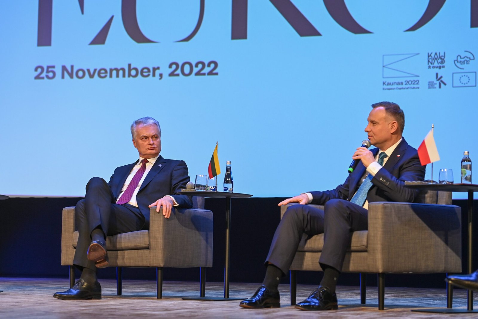 „Aš tikiu, kad mūsų veiksmai ir tikslai turi būti vedami principo, kad Europai reikėtų iš naujo apibrėžti ne tik Europos Sąjungą, bet ir poreikius, galimybes ir sunkumus, kuriuos netrukus patirsime. Karas Ukrainoje tęsis ir žaliavų kainos nebegrįš į prieškarinį lygį“, – konferencijoje Kaune penktadienį sakė Lenkijos prezidentas.