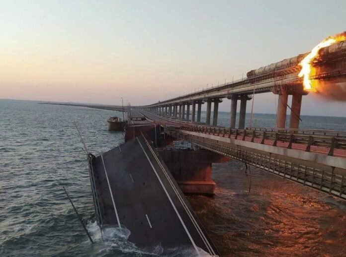 „Šiandien 6 val. 7 min. (ir Lietuvos laiku) automobilių eismui skirtoje Krymo tilto dalyje… sprogus automobilyje padėtai bombai užsidegė septynios naftos cisternos, geležinkeliu gabentos į Krymą“, – paskelbė komitetas.