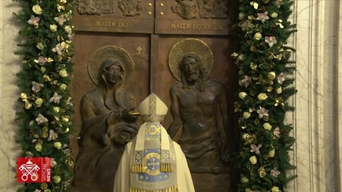 Sausio 1 dienos vakare Romoje plačiai atlapotos ketvirtosios Šventosios durys – jas Popiežiškojoje Švč. M. Marijos Didžiojoje bazilikoje, skambant bazilikos varpui „Sperduta“, atvėrė kardinolas Rolandas Makrickas, bazilikos arkikunigas koadjutorius.