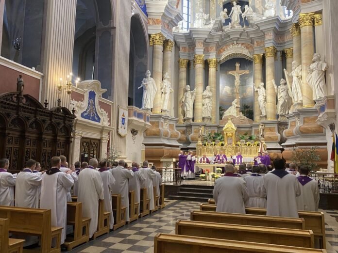 Eilinę konferenciją lapkričio 15-ąją Kauno arkivyskupijos kunigai pradėjo susirinkdami arkikatedroje bazilikoje į Mišias už mirusius savo brolius tarnystėje.