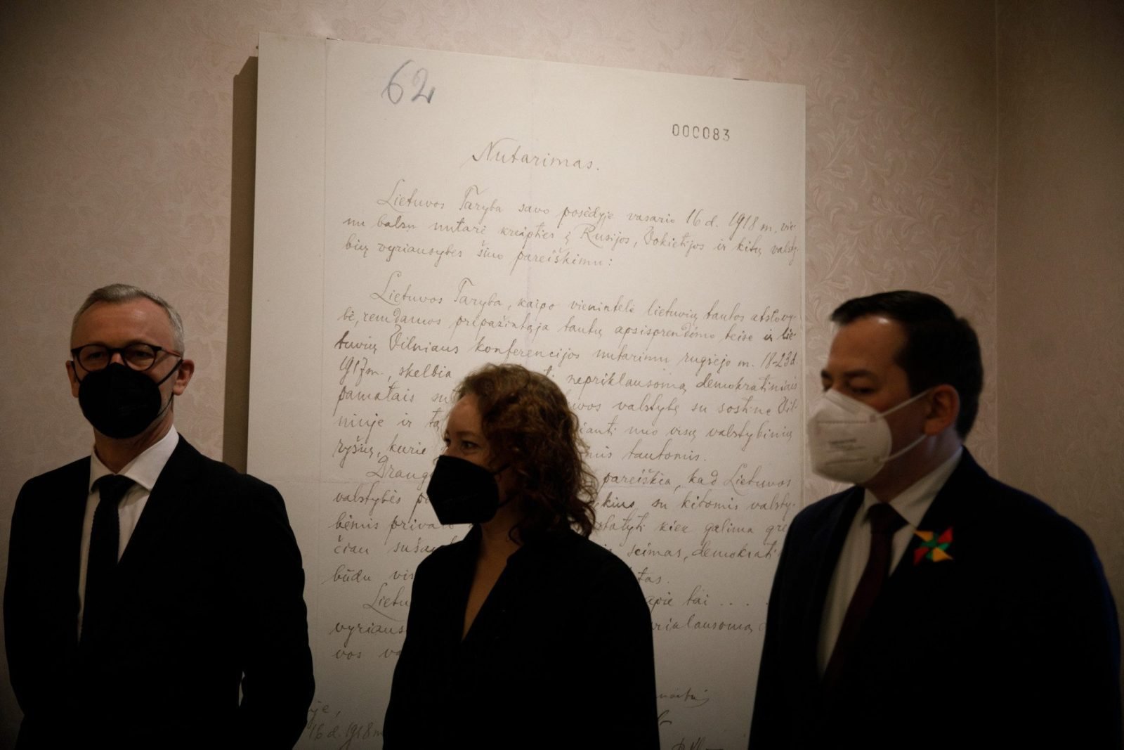 Vasario 16-osios Aktas itin svarbus šiandien, kuomet pasaulyje vėl mėginama riboti laisvą valstybių apsisprendimą, sako Lietuvos ir Vokietijos atstovai Kaune pradedant eksponuoti šį dokumentą.