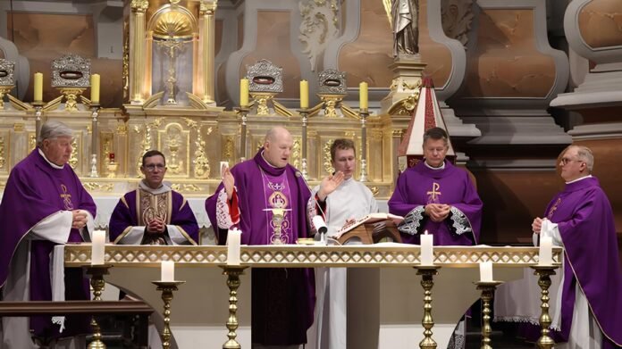 Rengti širdis, susitaikyti su Dievu ragino ir šv. Mišioms vadovavęs vyskupas augziliaras Saulius Bužauskas.