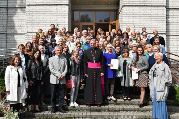 Po konferencijos arkivyskupas įteikė mokytojams kanoninius siuntimus – teisę dėstyti katalikų tikybą švietimo įstaigose. Mokytojus sveikino Kauno arkivyskupijos Katechetikos centro vadovas Artūras Lukaševičius.