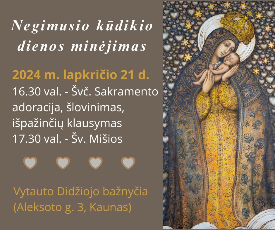 Visi norintys lapkričio 21 d. 16.30 val. kviečiami atvykti į Vytauto Didžiojo bažnyčią prisiminti ir pasimelsti už kūdikius, negimusius dėl aborto ar persileidimo.