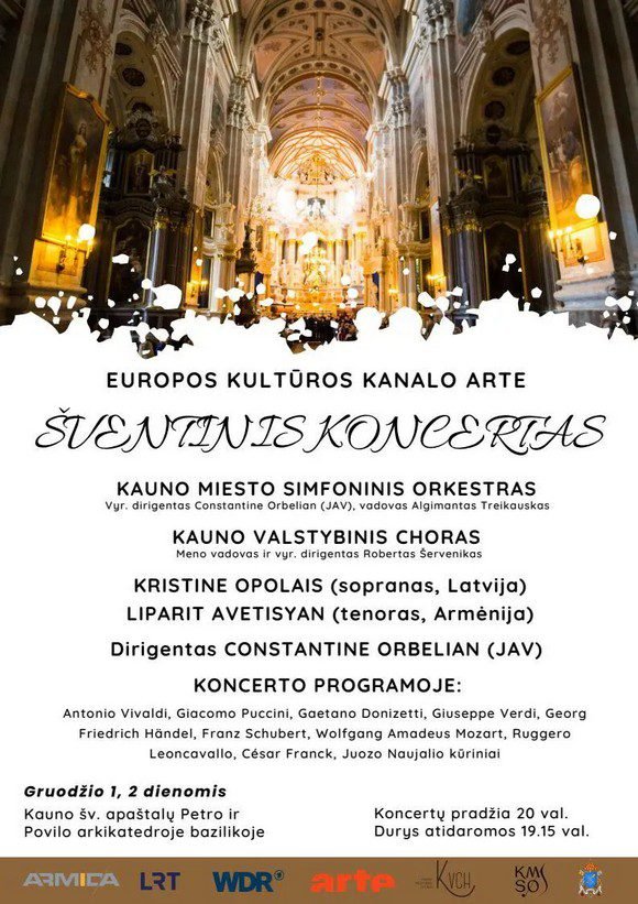 Gruodžio 1 ir 2 d. nuo 20 val. Kauno arkikatedroje planuojamas šventinis koncertas – įspūdingas projektas kartu su Europos visuomeniniu kultūros kanalu „Arte“. Koncerto įrašą Kalėdiniu laikotarpiu galės išvysti milijonai „Arte“ kanalo žiūrovų visame pasaulyje.