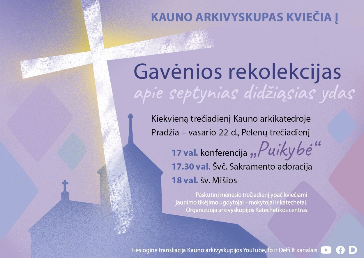 Vasario 22 d., Pelenų trečiadienį, Kauno arkikatedroje arkivyskupo kvietimu pradedamos gavėnios rekolekcijos. Jos vyks kiekvieną trečiadienį ir skiriamos visiems norintiems.