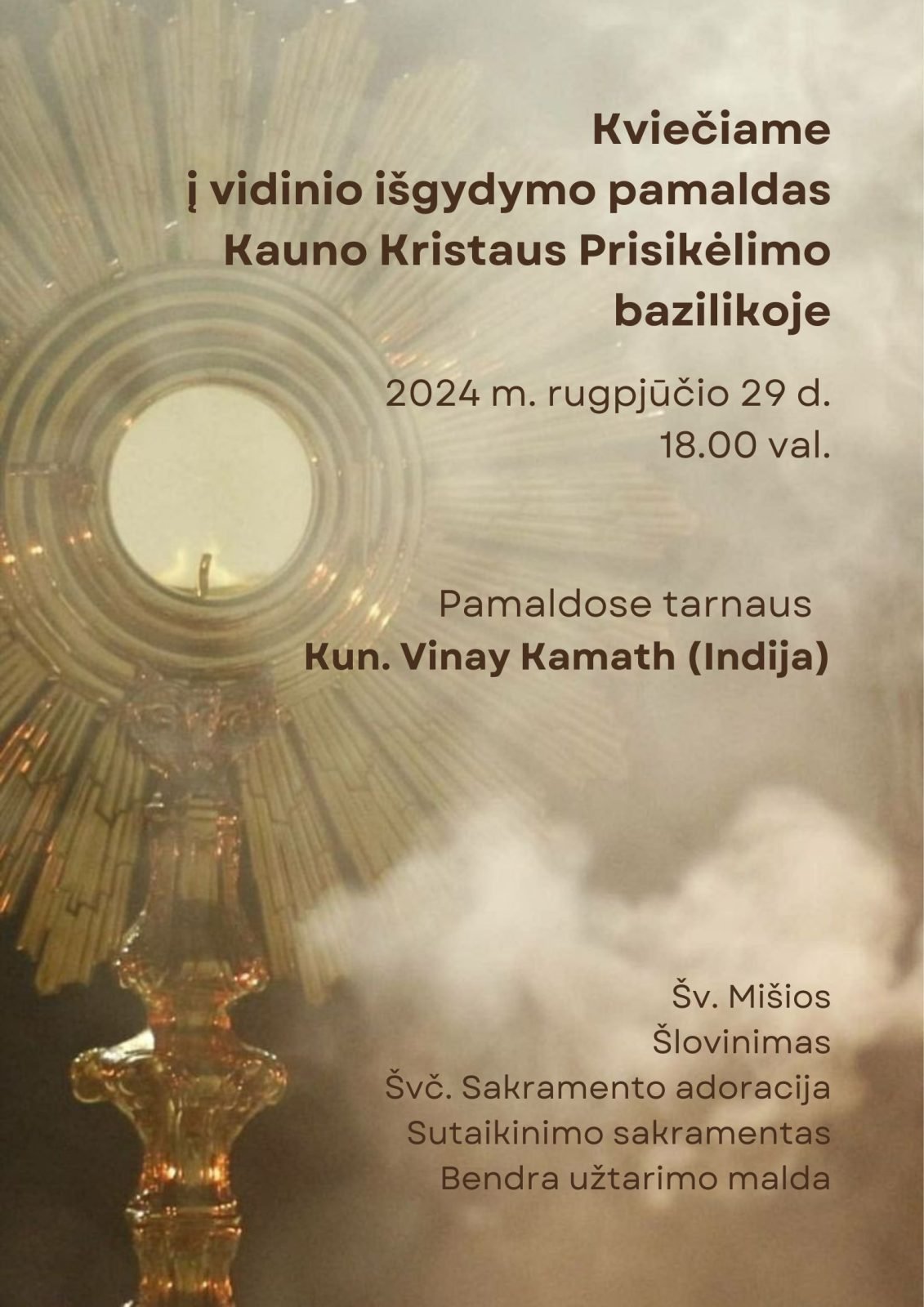 Kauno Kristaus Prisikėlimo bazilikoje rugpjūčio 29 d., ketvirtadienį, 18 val. vyks vidinio išgydymo pamaldos.