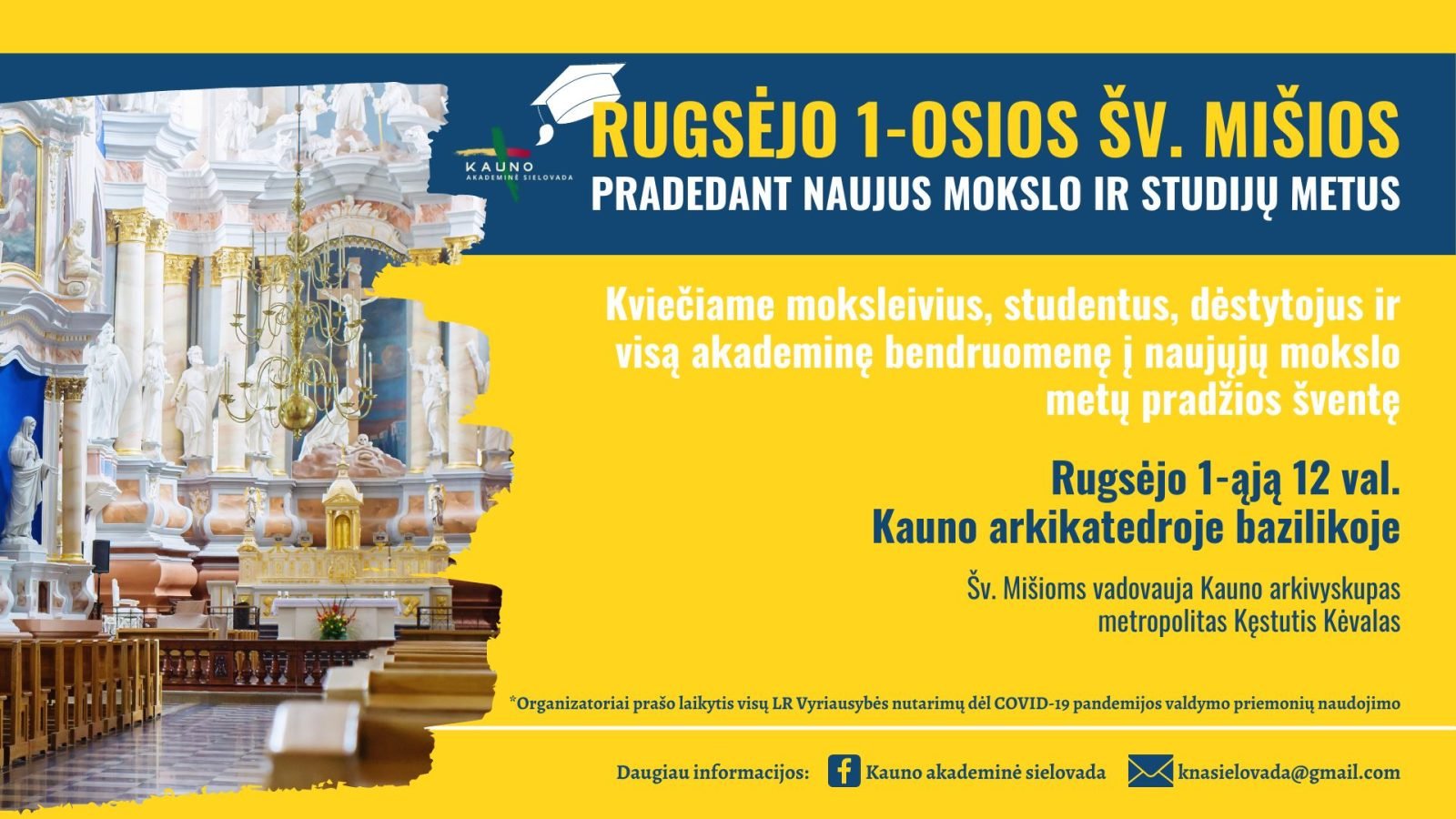 Rugsėjo 1-ąją 12 val. vyks šv. Mišios Kauno arkikatedroje bazilikoje, kurios pradės naujus mokslo ir studijų metus visiems moksleiviams bei studentams. Joms taip pat vadovaus Kauno arkivyskupas metropolitas Kęstutis Kėvalas.