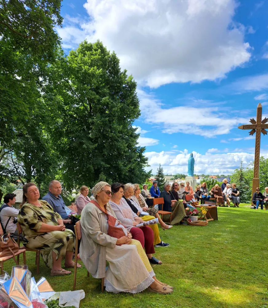 Po Šv. Mišių, kurios buvo aukojamos už poetus, rašytojus bei kultūros darbuotojus, visus, susirinkusius į bažnyčios šventorių, su poezijos atlaidais pasveikino klebonas Artūras Stanevičius ir pakvietė bendra malda pašlovinti Šventąją Dvasią.