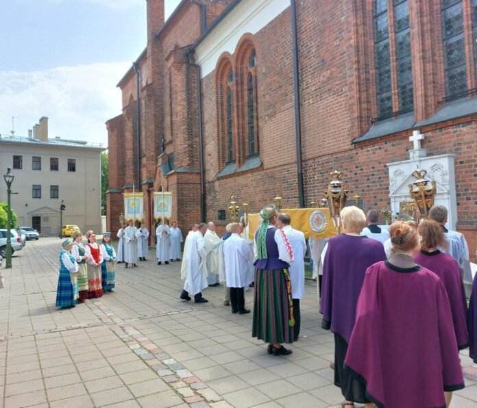 Šio sekmadienio liturgiją arkivyskupijos bažnyčiose, taip pat ir arkikatedroje bazilikoje užbaigė tradicinė Devintinių procesija su Švenčiausiuoju Sakramentu. Dievo žodis iš visų keturių Evangelijų – pagal Matą, Morkų, Luką ir Joną – nuo Palaiminimų, duonos padauginimo stebuklo, Paskutinės vakarienės ir Eucharistijos įsteigimo iki paraginimo pasilikti Kristaus meilėje kaip vynmedžio šakelėms – buvo paskelbtas arkikatedroje ir išėjus už jos sienų.