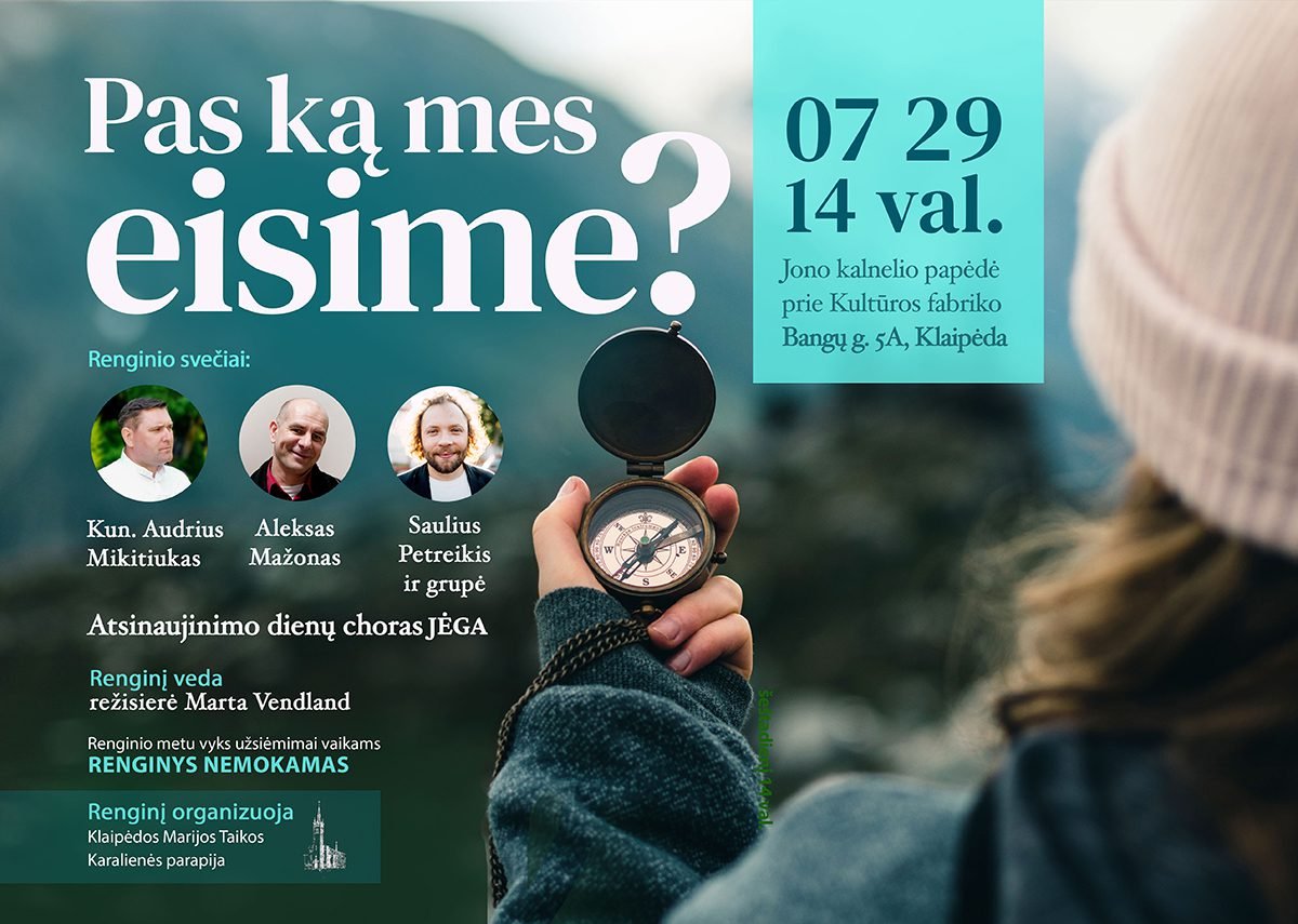 Klaipėdos Marijos Taikos Karalienės parapija liepos 29 d., šeštadienį, organizuoja renginį miestui „Pas ką mes eisime?“. Renginys vyks Jono kalnelio papėdėje prie Kultūros fabriko (Bangų g. 5a). Pradžia 14 val. Renginio trukmė – 4 val.