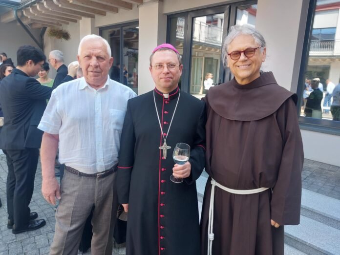 Po šv. Mišių pranciškonų vienuolyno atsiradimo istoriją priminė vienuolyno gvardijonas ir pakvietė pagrindinį vienuolyno mecenatą Martyną Gusiatiną su žmona iš nuncijaus rankų priimti paties popiežiaus pasirašytą palaiminimo raštą.